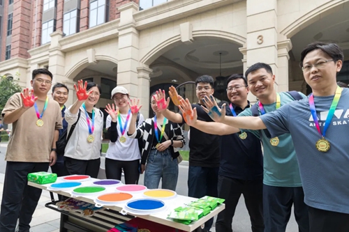 最后,集团领导为各队发放了纪念奖牌,大家接过奖牌,在手印墙按下了共同奋斗的印记,荣誉感和成就感溢于言表,“奋斗吧,城发人”的共识深深印刻在全员心中。
