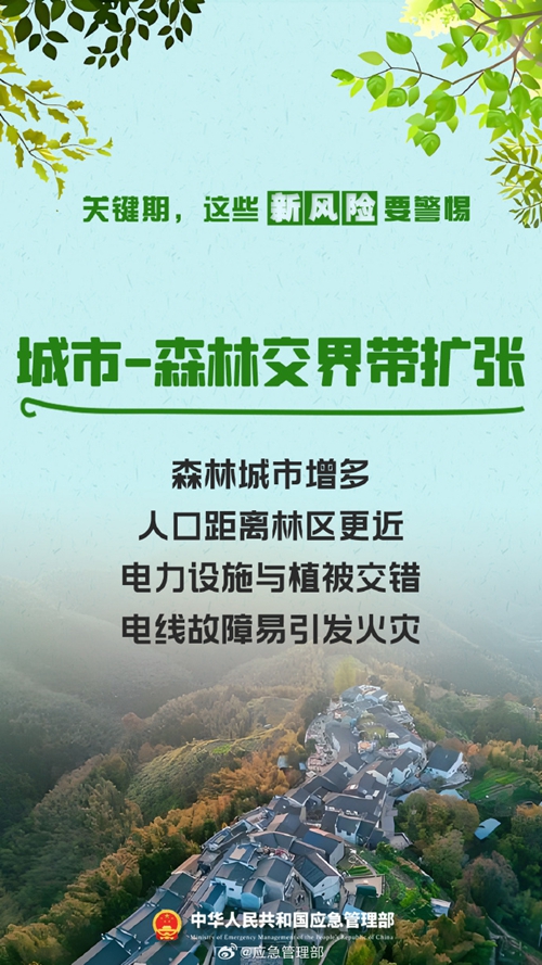 阳春三月,春意盎然。春季气温逐渐升高,降水偏少,大风天气增多。伴随春耕生产、踏青祭祀等生产生活用火增多,森林火灾风险增高。近期,多地陆续进入春季森林防火关键期,以下新风险要警惕!