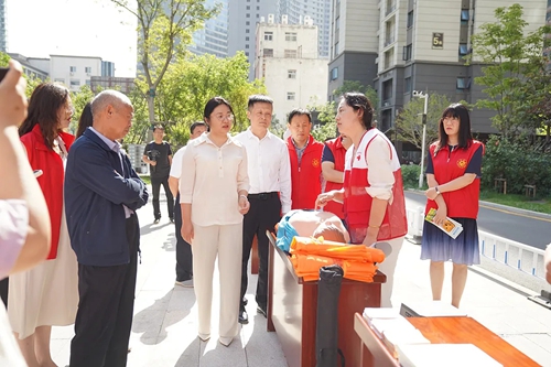河南中医药大学第一附属医院设立了义诊专区,为辖区群众提供优质公益诊疗服务,并结合防灾减灾工作为居民科普保护自身健康的医学知识。防汛隐患排查是保障群众生命财产安全的重要环节,金水区消防救援大队现场指导物业人员开展防汛全流程演练并现场演示防汛挡板搭建。