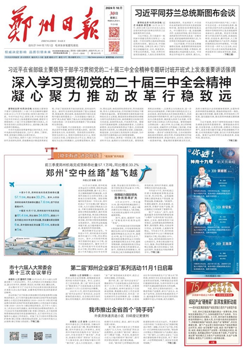 党的二十届三中全会提出,高质量发展是全面建设社会主义现代化国家的首要任务。当前,郑州正锚定高质量发展这一首要任务,因地制宜发展新质生产力,加快构建现代化产业体系。