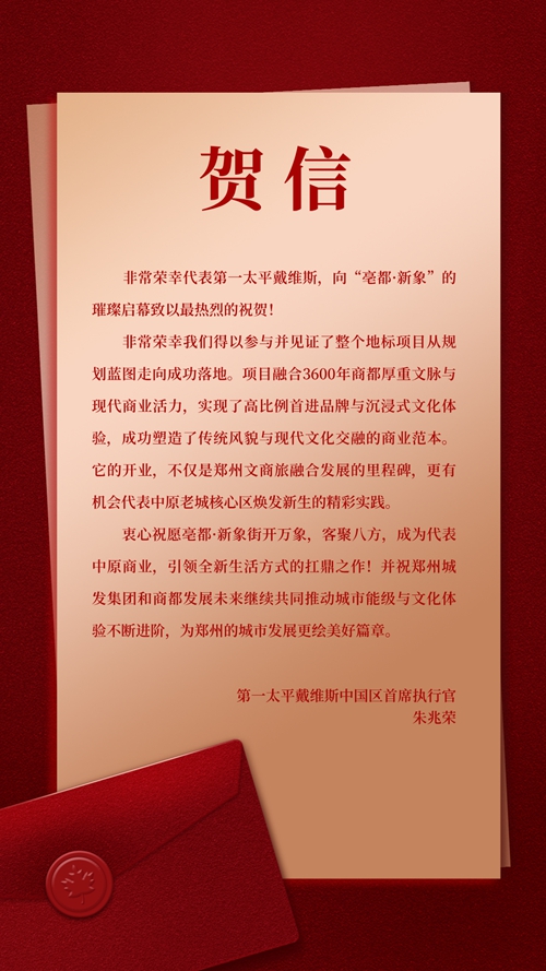 “亳都·新象”由城发集团投资建设,项目的成功开街,不仅是商业运营的胜利,更是城市文化与商业融合发展的典范。第一太平戴维斯中国区首席执行官朱兆荣在贺词中表示,“亳都·新象的开业,不仅是郑州文商旅融合发展的里程碑,更有机会代表中原老城核心区焕发新生的精彩实践。”