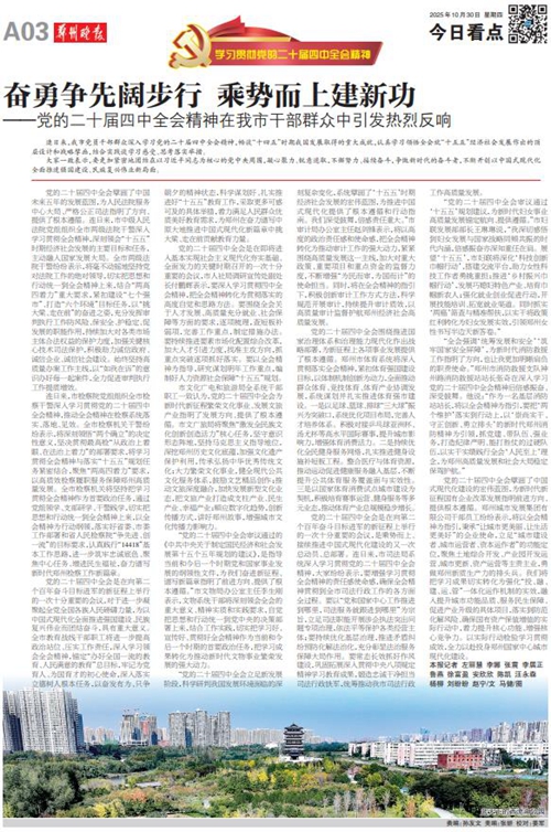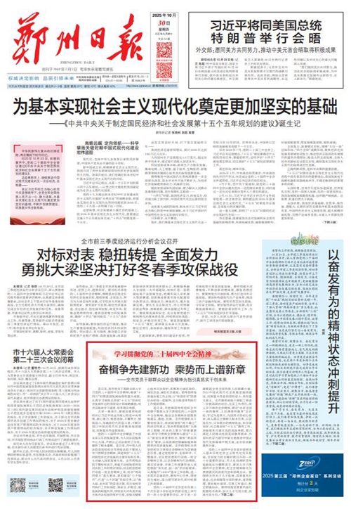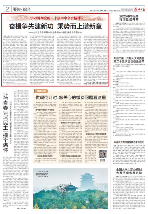 党的二十届四中全会擘画了中国式现代化建设的宏伟蓝图,为新时代新征程国有企业改革发展指明前进方向、提供根本遵循,郑州城发集团广大党员干部群众深受鼓舞、倍感振奋。近日,《郑州日报》《郑州晚报》开设了【学习贯彻党的二十届四中全会精神】专栏,2025年10月30日,报道了郑州城发集团深入学习贯彻落实党的二十届四中全会精神,以全会精神为指引真抓实干创未来。